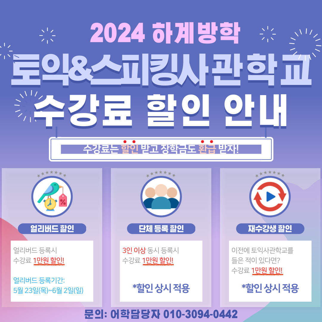 [2024 하계] 토익&스피킹사관학교 모집 및 수강료 할인 안내