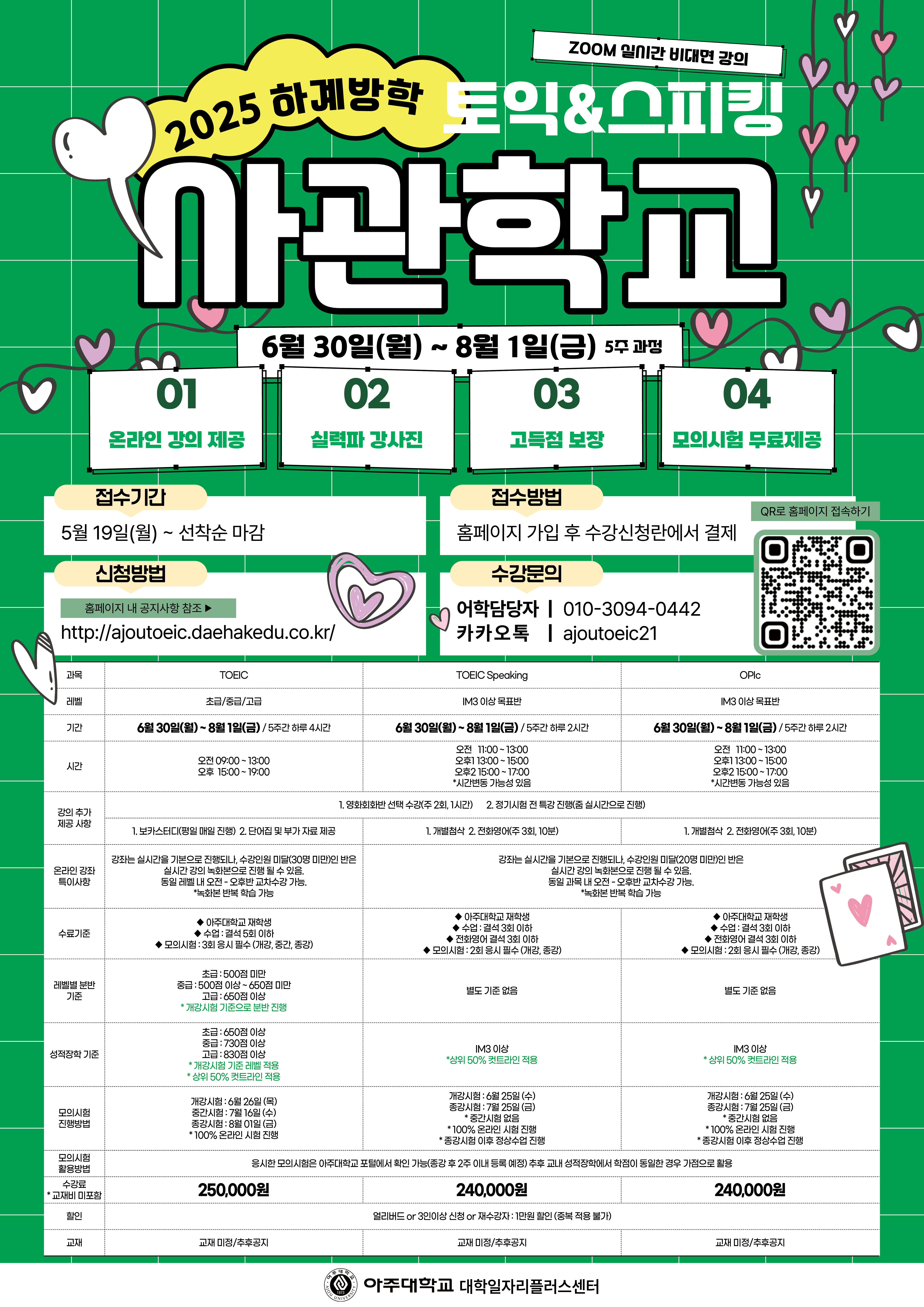 [2025 하계]토익&스피킹사관학교 모집 안내